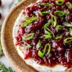 A quick and flavorful 10-minute cranberry jalapeño dip featuring whipped dairy-free cream cheese, fresh jalapeños, zesty lime, and a vibrant cranberry sauce topping, perfect for festive gatherings or simple snacking.