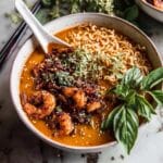 This 30 Minute Crispy Thai Peanut Chicken Ramen is a flavorful and hearty dish combining tender, crispy chicken with a rich, creamy Thai peanut broth infused with coconut milk, red curry paste, and fresh aromatics. Loaded with kale, bell pepper, and fresh herbs, this comforting ramen delivers a perfect balance of spicy, savory, and nutty flavors in under half an hour.