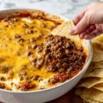 This easy 5-Ingredient Football Dip is a crowd-pleaser perfect for game day. Made with seasoned ground beef, cream cheese, salsa, and sharp cheddar, it’s baked until bubbly and delicious, ready in just 35 minutes.