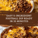 This 5-Ingredient Football Dip is a crowd-pleasing appetizer that’s quick and easy to make. With layers of seasoned ground beef, creamy cheese, and zesty salsa, it’s perfect for game day or any casual gathering. Ready in just 35 minutes, it’s sure to become a go-to recipe.