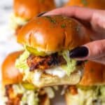 Store any leftover chicken and sauce separately in airtight containers in the refrigerator for up to 3 days. Reheat the chicken gently in a skillet or microwave until warmed through. Assemble sliders fresh before serving to keep the buns from becoming soggy.