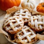 These Apple Pie Cookies bring the delicious flavors of classic apple pie into a charming, handheld treat. Featuring a buttery, flaky crust filled with a spiced honeycrisp apple mixture, these cookies are topped with a beautiful lattice and a sprinkle of cinnamon or turbinado sugar for a delightful crunch and sweetness. Perfect for fall gatherings or anytime you crave the taste of apple pie in cookie form.