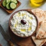 Tzatziki is a refreshing Greek yogurt and cucumber dip, perfect for warm days or as a flavorful side. Its creamy texture combined with garlic and olive oil makes it a versatile addition to many meals.