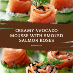Keywords: avocado mousse, smoked salmon appetizer, Christmas appetizer, creamy avocado dip, festive hors d’oeuvre, easy holiday recipe, dill avocado mousse