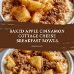 Delicious and wholesome Baked Apple Cinnamon Cottage Cheese Breakfast Bowls combine creamy cottage cheese with warm cinnamon-spiced apples for a nutritious start to your day. These baked breakfast bowls are quick to prepare, naturally sweetened with maple syrup, and perfect for a cozy morning treat.