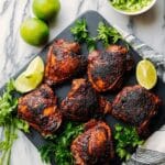 - Do not trim the chicken thighs; the fat helps keep them moist and flavorful as it renders during cooking.