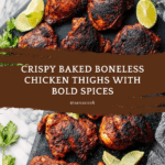 Baked boneless chicken thighs are a flavorful and juicy option for an easy weeknight dinner. This recipe features a spicy, tangy seasoning blend that caramelizes beautifully under the broiler. Ready in under 30 minutes, it’s perfect for a quick meal that doesn’t sacrifice taste.