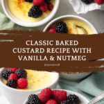 This classic baked custard recipe is a simple yet comforting dessert made with whole milk, eggs, sugar, and vanilla. It’s gently baked in a water bath to achieve a smooth, creamy texture with a delicate nutmeg topping. Perfect served warm or chilled, and lovely with fresh berries for added freshness. Ideal for cozy days, this recipe offers a soul-affirming and timeless treat that’s easy to prepare with everyday ingredients.