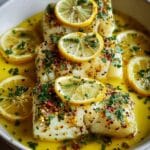 Keywords: baked cod, lemon garlic cod, seafood recipe, healthy fish dish, baked fish with butter sauce