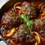 Braised Catalina Chicken features tender, bone-in skin-on chicken thighs simmered in a tangy, slightly sweet Catalina sauce made from ketchup, apple cider vinegar, honey, and a blend of spices. The chicken is first seared to develop a golden crust, then slow-baked in the sauce to maximize flavor and juiciness. This comforting dish is perfect for a flavorful weeknight dinner and pairs beautifully with rice or roasted vegetables.