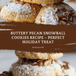 These Buttery Pecan Snowball Cookies are delicate, melt-in-your-mouth treats featuring a rich buttery base, finely chopped pecans, and a generous coating of powdered sugar for a snowy finish. Perfect for holiday gatherings or any cozy occasion, these cookies combine a tender crumb with a sweet, nutty flavor.