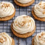 Keywords: carrot cake cookies, carrot cookies, cream cheese frosting, browned butter frosting, spiced cookies, soft cookies, dessert cookies