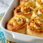 These cheese rolls are soft, flavorful, and packed with a blend of cheddar and gruyere cheeses. Perfect as a savory snack or a side, they combine a tender dough with a rich garlic-thyme butter for an irresistible treat.