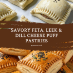 These cheese puff pastries filled with feta, leeks, and dill make a delightful savory treat perfect for any occasion. Crispy on the outside and bursting with flavorful filling, they are simple to prepare but sure to impress your guests.