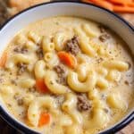 Keywords: Cheeseburger Macaroni Soup, creamy soup, comfort food, ground beef, macaroni, cheesy soup, easy stovetop soup, family meal