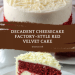 Keywords: Cheesecake Cake, Red Velvet Cake, Cheesecake Factory Inspired, Cream Cheese Frosting, Baked Cheesecake, Layer Cake