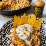 - Step 5: Serve hot, topped with sour cream, fresh cilantro, and a drizzle of Southwest Ranch sauce. Accompany with tortilla chips for added crunch and enjoyment.