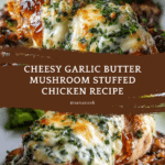 Keywords: cheesy garlic butter mushroom stuffed chicken, stuffed chicken breasts, baked chicken recipe, mushroom stuffed chicken, garlic butter chicken, creamy cheese chicken, easy dinner ideas