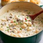 This dish is delicious served over egg noodles, steamed rice, puff pastry shells, or even warm biscuits. Choose whatever base you prefer to soak up the creamy sauce.