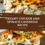 This Chicken and Spinach Casserole with Cream Cheese combines tender chicken breasts with a creamy, cheesy spinach filling. It’s a comforting, flavorful dish that’s easy to prepare and perfect for a satisfying weeknight dinner.