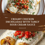 These Chicken Enchiladas with Sour Cream White Sauce offer a creamy twist on a classic favorite. Filled with tender chicken and cheese, then smothered in a tangy sour cream sauce, they make a comforting meal perfect for any night of the week.