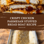 This Chicken Parmesan Stuffed Bread Boat is a delicious and hearty dish that combines crispy breaded chicken breasts with rich marinara sauce and melted cheeses, all nestled inside a hollowed-out Italian bread loaf. Perfect for a satisfying meal that’s easy to share and full of Italian-inspired flavors.