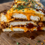 This Chicken Parmesan Stuffed Bread Boat is a delicious and hearty dish that combines crispy breaded chicken breasts with rich marinara sauce and melted cheeses, all nestled inside a hollowed-out Italian bread loaf. Perfect for a satisfying meal that’s easy to share and full of Italian-inspired flavors.