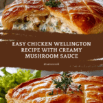 Chicken Wellington is an elegant twist on the classic beef dish, featuring tender chicken breasts wrapped in flaky puff pastry with a creamy mushroom sauce. This recipe is perfect for special occasions or a comforting dinner that impresses without too much fuss.