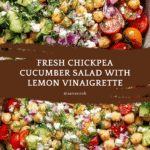 This refreshing Chickpea Cucumber Salad combines crisp cucumbers, juicy cherry tomatoes, tangy red onion, and creamy feta cheese with a zesty lemon-Dijon vinaigrette. Perfect as a light lunch or a side dish, it’s quick to prepare and packed with vibrant, Mediterranean-inspired flavors.