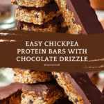 These Chickpea Protein Bars are a healthy, delicious, and easy-to-make snack packed with plant-based protein and natural sweetness. Made from chickpeas, oats, peanut butter, and a touch of maple syrup, these bars offer a perfect balance of nutrition and flavor. With mini chocolate chips folded in and a rich dark chocolate topping, they satisfy your sweet tooth while keeping things wholesome and gluten-free.