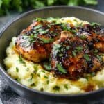 This flavorful recipe features tender bone-in chicken thighs marinated in a sweet and smoky chipotle honey glaze, baked to perfection with crispy skin. Paired with creamy smoked gouda mashed potatoes, this comforting dish combines smoky, sweet, and savory flavors for a satisfying meal perfect for any occasion.