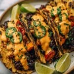 Keywords: chipotle tacos, sweet potato tacos, quinoa tacos, vegan tacos, healthy tacos, plant-based, dairy-free, roasted vegetables