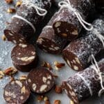 - Serve: Once firm, remove the chocolate salami from the wrap and dust with powdered sugar before slicing for that classic salami effect and extra sweetness.
