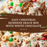 Keywords: Christmas snack mix, holiday treat, white chocolate snack, festive snack, reindeer crack