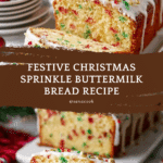 This Christmas Sprinkle Buttermilk Bread is a festive and moist holiday favorite that’s perfect for celebrating the season. Featuring tender, buttery bread speckled with colorful red and green sprinkles, it combines classic buttermilk bread flavors with a fun, decorative twist. Easy to prepare and bake, this sweet bread makes a delightful treat for breakfast, dessert, or gifting during the holidays.