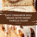 Keywords: cinnamon roll bread, cinnamon swirl bread, breakfast bread, cinnamon bread loaf, vanilla glaze bread
