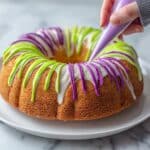 - Decorate the cake: Drizzle the colored frostings over the cooled cake in swirls or stripes for a festive look. If the frosting thickens as it sits, reheat briefly to restore perfect drizzle consistency.