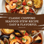 Store leftover cioppino in an airtight container in the refrigerator for up to 2 days. Reheat gently on the stove over low heat to avoid overcooking the seafood. It’s best enjoyed fresh but can be frozen without the shellfish for longer storage.