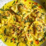 A delicate and aromatic dish featuring flaky white fish poached in a rich coconut milk broth infused with saffron, turmeric, and coriander, finished with fresh parsley and optional chili oil and lemon wedges. Perfectly tender and flavorful, this Coconut Saffron Poached Fish pairs beautifully with steamed rice or vegetables for a comforting, elegant meal.