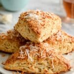 Keywords: Coconut scones, coconut baked goods, easy scone recipe, tropical scones, breakfast scones, coconut cream dessert
