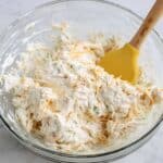 - Mix Cream Cheese Base: Place the softened cream cheese in a large mixing bowl and beat it using an electric mixer until smooth and creamy. Then, blend in the mayonnaise and sour cream to the mixture until evenly combined.