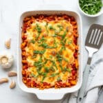 - Garnish and Serve: Remove from the oven, garnish with chopped fresh basil leaves, and serve the pasta bake hot for a delicious, hearty meal.