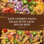 Cowboy Pasta Salad is a hearty and flavorful dish perfect for potlucks, barbecues, or a satisfying dinner. Packed with seasoned ground beef, fresh veggies, and a creamy dressing, it combines Tex-Mex flavors in every bite.