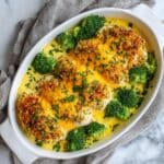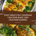 This Cracker Barrel Broccoli Cheddar Chicken recipe combines tender baked chicken breasts with steamed broccoli, rich cheddar cheese soup, and a buttery Ritz cracker topping for a comforting, flavorful meal that’s easy to prepare in one baking dish.