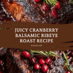 This Cranberry Balsamic Ribeye Roast features a succulent ribeye roast marinated overnight in a tangy and sweet blend of balsamic vinegar, cranberry sauce, garlic, and spices. The roast is seared to lock in flavors, then oven-roasted to medium-rare perfection with fresh cranberries and thyme, creating a rich pan sauce that’s perfect for an elegant and flavorful meal.