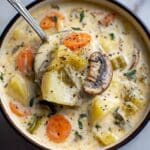 This Creamy Artichoke and Vegetable Soup is a warm, comforting bowl of creamy goodness featuring a medley of tender vegetables and artichokes. Rich with a creamy roux base and infused with aromatic herbs, it makes an ideal hearty appetizer or light meal served alongside buttered rustic bread.