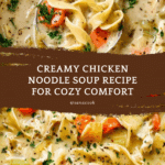 This creamy chicken noodle soup is a comforting and hearty meal perfect for chilly days. Loaded with tender chicken, wide egg noodles, and a flavorful blend of herbs, it’s easy to make and satisfying for the whole family.