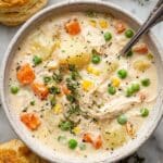 This Chicken Pot Pie Soup is a hearty and comforting twist on the classic pot pie. Loaded with tender chicken, fresh vegetables, and a rich creamy broth, it combines all the delightful flavors of a traditional chicken pot pie into a warm, easy-to-make soup perfect for chilly days or any time you crave cozy comfort food.