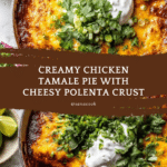 A delicious and creamy Chicken Tamale Pie featuring tender shredded chicken cooked in a flavorful enchilada sauce with poblano peppers and spices, topped with cheesy buttery polenta, then baked to perfection. This comforting dish combines bold Mexican-inspired flavors with a creamy texture, perfect for a hearty family meal.
