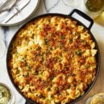 - Step 9: Sprinkle the Panko mixture evenly over the casserole. Place the Dutch oven or transfer to a baking dish if preferred.